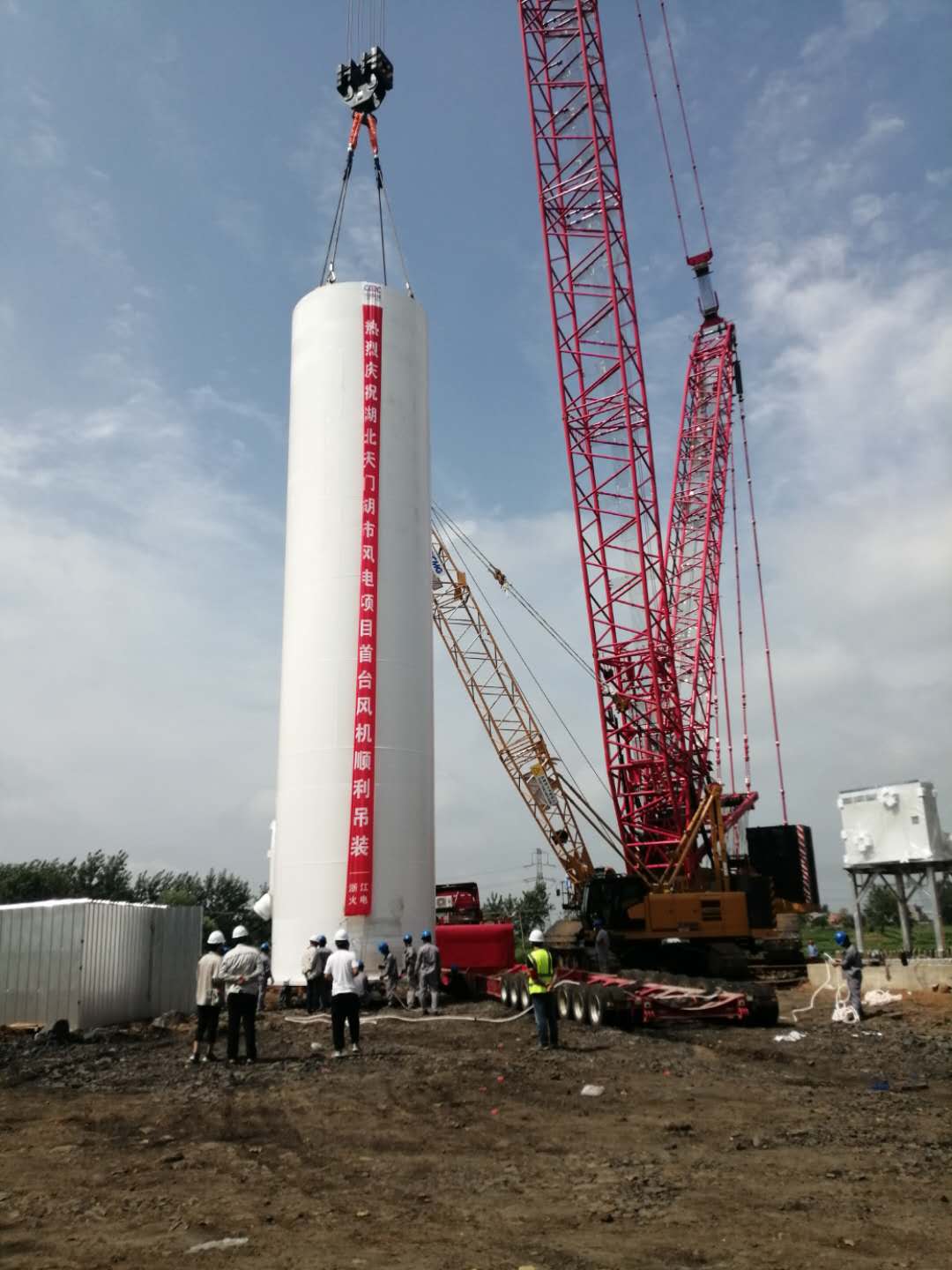 熱烈慶祝湖北天門胡市風電項目首臺風機順利吊裝