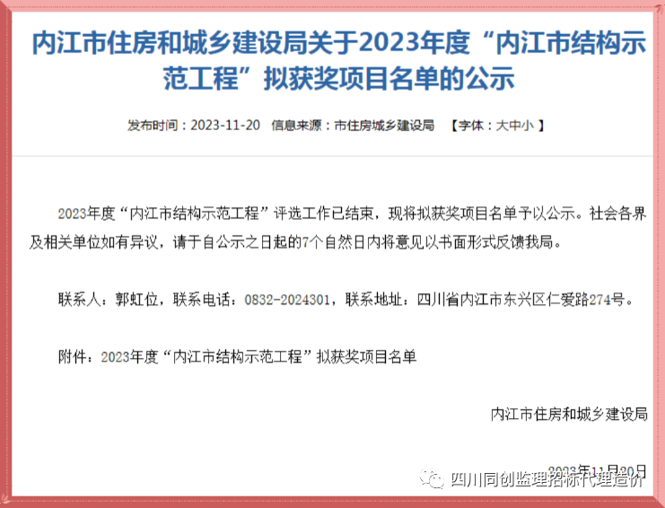 四川同創(chuàng)建管又一項目喜獲2023年度“內(nèi)江市結(jié)構(gòu)示范工程”!