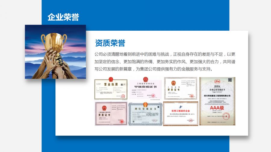 同創(chuàng)公司共完成代理項目的中標(biāo)金額約230億元。工程監(jiān)理和造價咨詢業(yè)務(wù)已涵蓋全部14個專業(yè)類別,提供監(jiān)理和造價咨詢服務(wù)的項目投資額達(dá)710億元。單個監(jiān)理項目總投資達(dá)26億元,監(jiān)理合同金額達(dá)2421萬元。在測繪、工程項目管理、全過程咨詢等領(lǐng)域均已涉及。四川同創(chuàng)建設(shè)工程管理有限公司通過不懈的努力,緊跟著國家與行業(yè)政策,茁壯成長,業(yè)務(wù)已邁上了穩(wěn)定的新臺階。